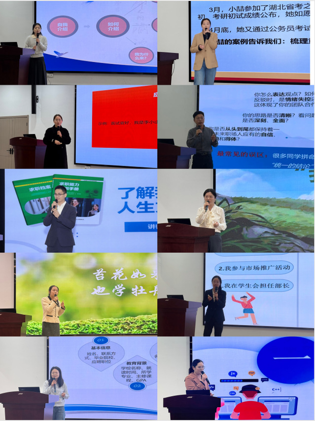11月4日,由大学生就业指导中心主办的2025年就业指导课程教学大赛在教三-102成功举办。金融学院、工商管理学院、会计学院、外国语学院、信息工程学院、艺术设计学院和学生工作处共10名就业指导授课教师报名参加比赛。
